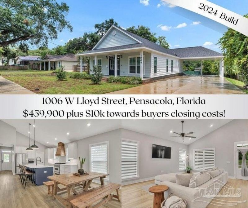 Seller Incentives Available! Seller will contribute $10,000 toward buyer's closing costs with a full-price offer or offer a 2-1 interest rate buydown! Stunning 2024 custom-built, nearly new 3BR/2BA home with 1,840 sq ft on a 0.26-acre lot, just minutes from Downtown Pensacola. This home features a desirable open-concept, split floor plan with a spacious living area highlighted by a 16-ft cathedral ceiling, LVP flooring, ceiling fan, and elegant finishes throughout. The gourmet kitchen includes stainless steel appliances, a Z-Line 6-burner gas cooktop with electric oven and custom vent hood, quartz countertops, an 8-ft island with farmhouse...read more