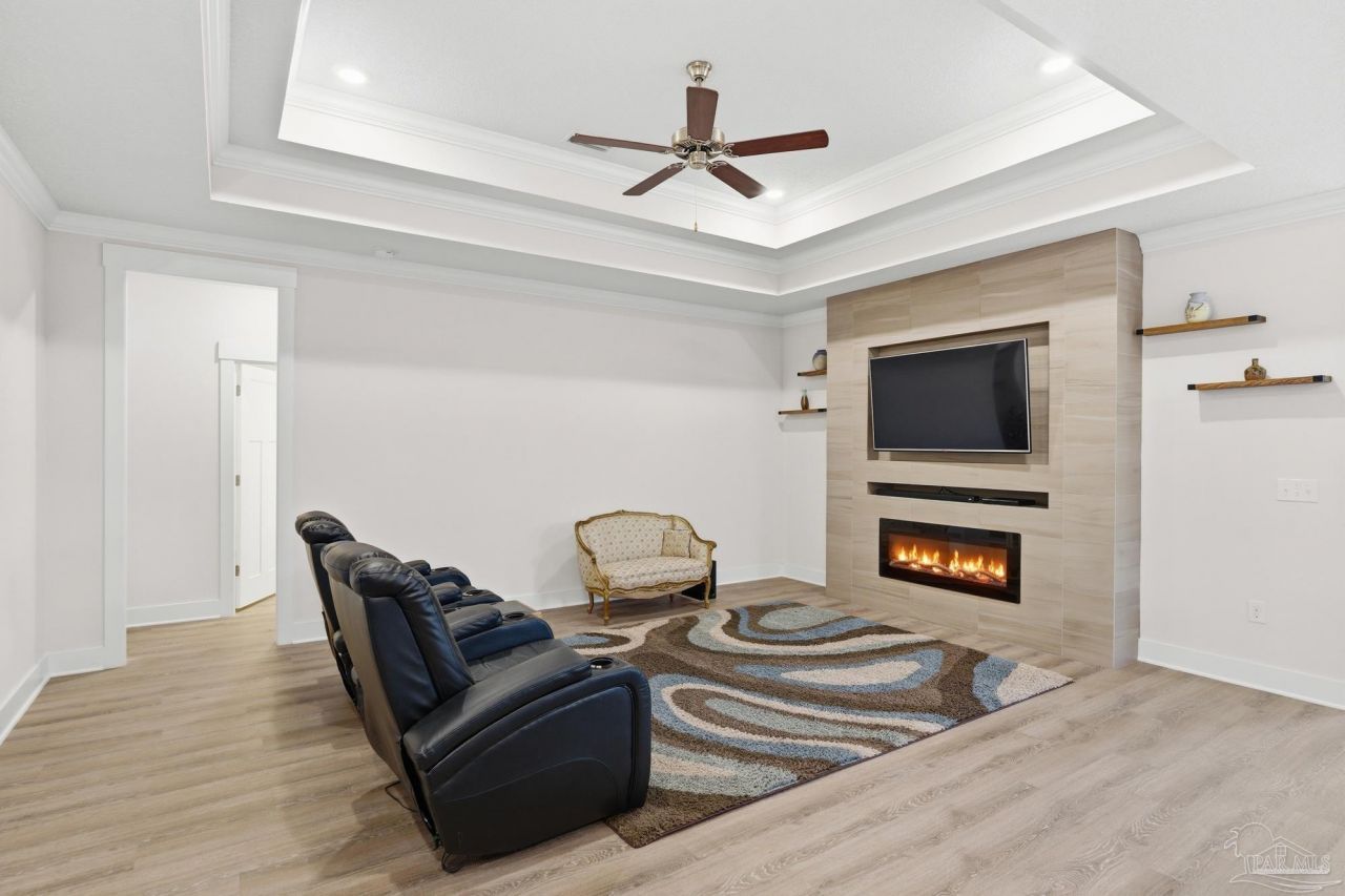 This beautifully designed 4-bedroom, 3-bath home offers a masterclass in comfort and convenience. The spacious, open split floor plan is accented by elegant crown molding, granite countertops, luxury plank flooring, and a brand-new stove (2025). Relax by the electric fireplace or retreat to the primary suite's spa-like bath with a garden tub. Step outside to a covered front porch perfect for birdwatching and pine tree views, or enjoy the covered back porch overlooking a lush Zoysia lawn (2022). The large, fenced-in backyard features a fruit-bearing grapefruit tree, a sizeable storage shed, and a dedicated irrigation system with a well pump....read more